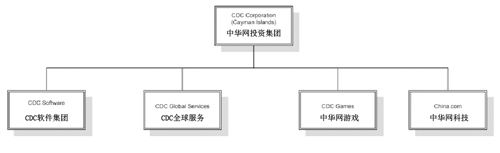 如今的母公司“中华网”底下,有CDC软件、CDC全球服务、CDC游戏和China.com四家子公司。而在整个集团内部,又一共有三家上市公司:即1999年最早在纳斯达克上市的中华网,后更名为现在的“中华网投资集团”(NASDAQ:CHINA)、简称“CDC集团”,2000年在香港上市的中华网(8006.HK)和2009年在纳斯达克上市的CDC软件集团(NASDAQ:CDCS),母公司CDC集团分别拥有79%和85%的股份。