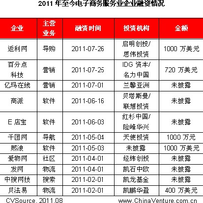 表1 2011年至今电子商务服务业企业融资情况