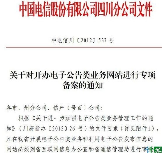 731日消息,近日大量站长反映接到IDC通知要求对论坛进行专项备案,截止日期为20121231日,逾期还没有进行专项备案的网站将被关闭。记者登录成都知名虚拟主机提供商西部数码官方网站发现,西部数码的用户公告里已经发布了关于对开办电子公告类业务网站进行专项备案的通知,通知里明确指出凡在四川开展电子公告发布信息的网站(主要是论坛)必须到各省互联网信息办公室和通信管理局进行论坛专项备案。 确保在20121231日前办理完成相关专项备案手续,逾期未办理的,网站将被关闭。