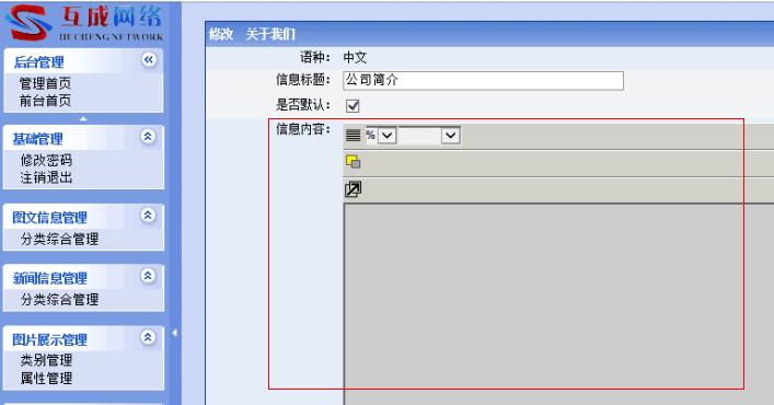 互成网络一直致力于帮助企业解决网络宣传问题——您身边的网络服务专家,近日有老客户反映网站后台登陆出现灰色空白没法编辑(如下图),