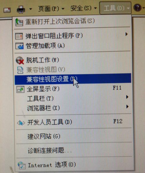 二、IE浏览器打开,选择右上角浏览器“工具”,点击“兼容性视图设置”,再“添加此网站”下面添加你的网址,点击“添加”即可(如下图)。
